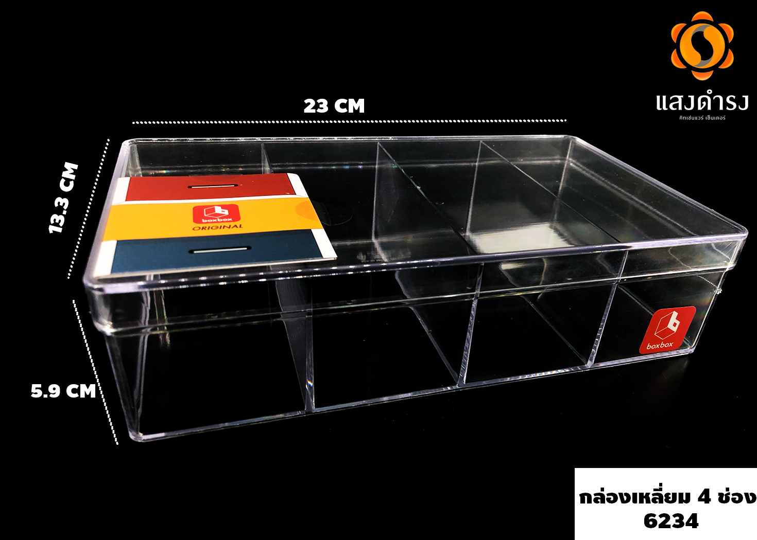 กล่องเหลี่ยมใส4ช่อง 6234 (13.3*23*5.9 ซม.)